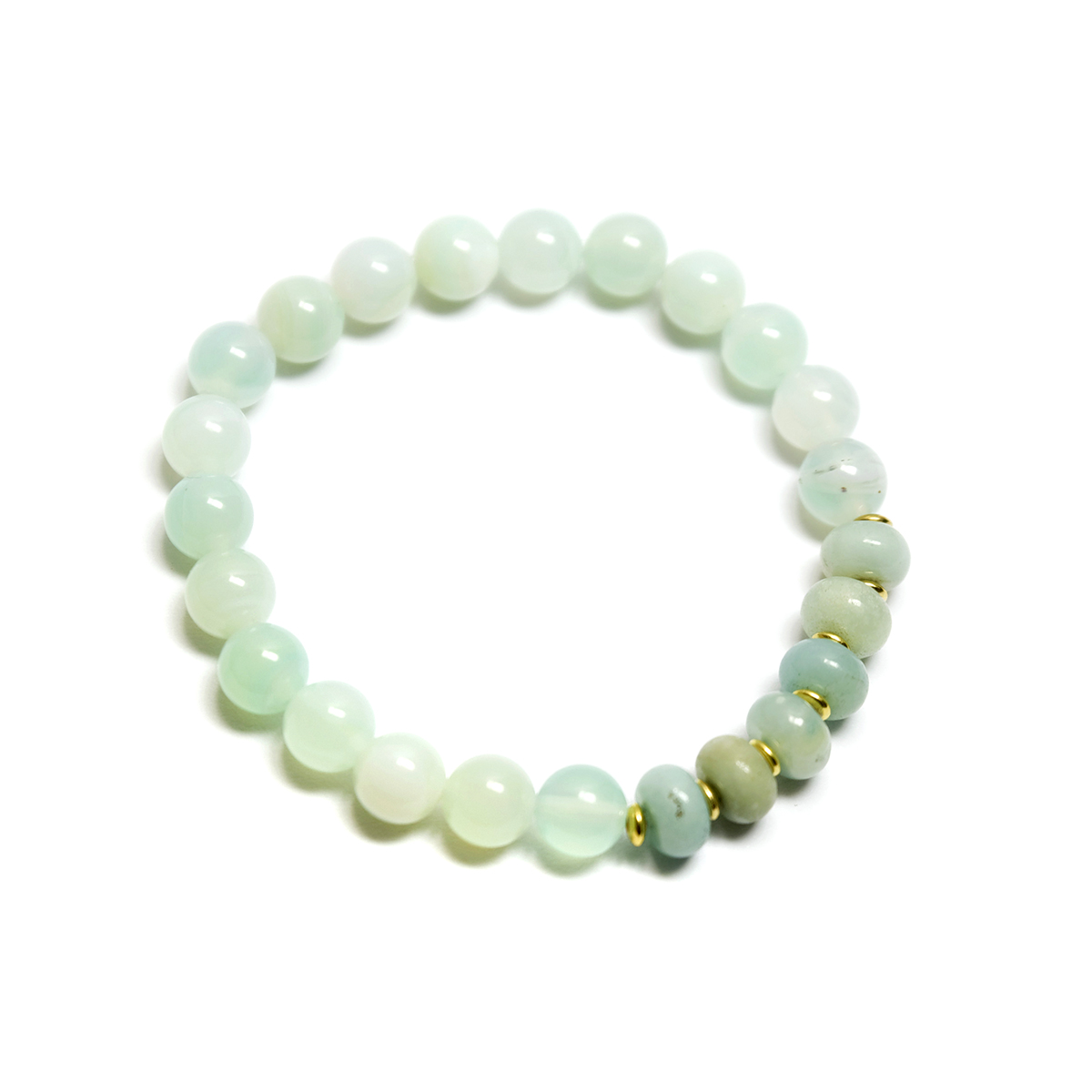Apyrankėje suverti natūralaus agato ir amazonito akmens karoliukai, aukso spalvos metalo detalės.