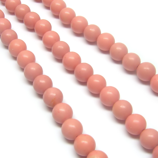 Rausvai dažyto hovlito 8 mm karoliukų juosta. Pusiau matiniai.